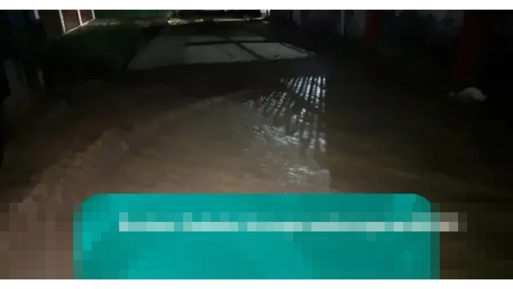Air yang meluap deras dari Sungai Muara Pisang mengalir di jalanan menurun ke arah Danau Maninjau. Pantauan Mureks di lokasi pada pukul 23.09 WIB menunjukkan, aliran air masih sangat deras dan warga tampak bersiaga di sekitar permukiman mereka.
