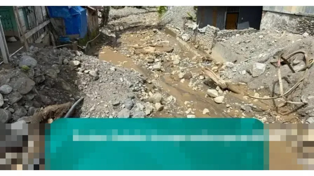 Rumah-rumah penduduk yang berada di sekitar sungai kini dipenuhi lumpur. Beberapa di antaranya bahkan tertimbun lumpur hingga mencapai setengah tinggi bangunan, menunjukkan parahnya dampak banjir kali ini.