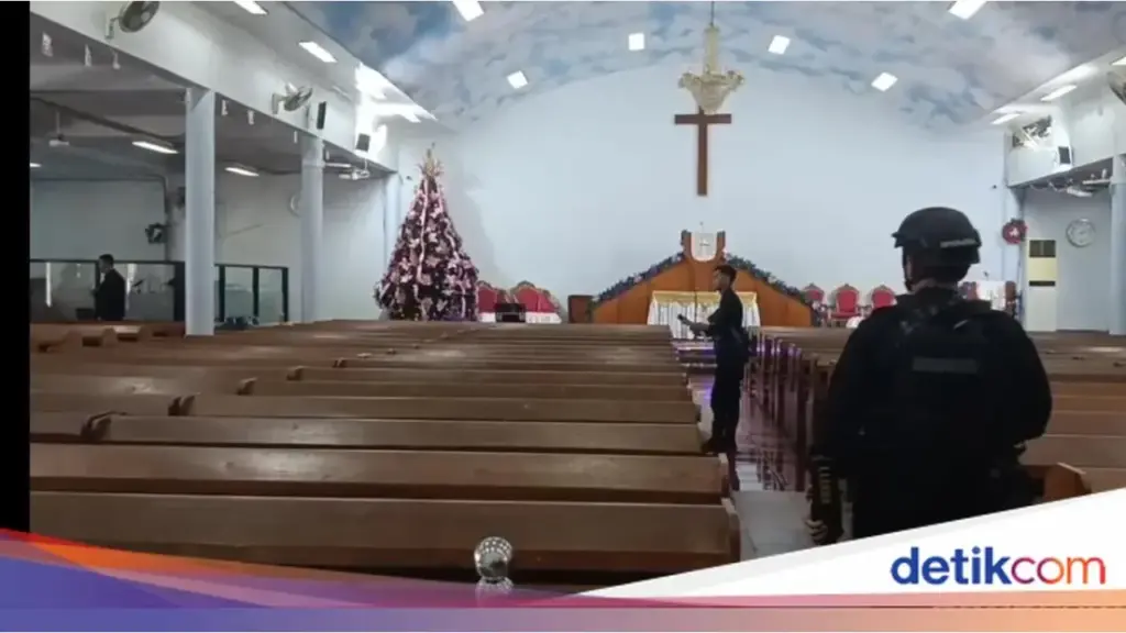 Tim Penjinak Bom (Jibom) Brimob dari Unit Komposit BKO Polresta Serang Kota melakukan sterilisasi di sejumlah gereja di Kota Serang, Banten, pada Rabu (24/12/2025). Langkah ini diambil guna memastikan keamanan dan kenyamanan jemaat dalam melaksanakan ibadah Natal.