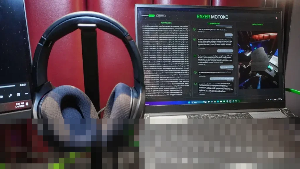 Respons AI dalam demo disampaikan melalui soundbar Razer Leviathan. Namun, jika menjadi produk nyata, semua umpan balik audio akan langsung terdengar melalui earcup headset, memastikan privasi pengguna.