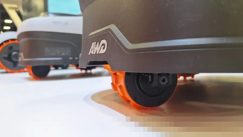 Salah satu fitur paling unik dari Navimow i2 AWD adalah sistem penggerak semua roda (All-Wheel Drive/AWD). Fitur ini sangat jarang ditemukan pada robot pemotong rumput berukuran ringkas. Meskipun hanya memiliki dua roda utama, seperti umumnya robot pemotong rumput kompak, sistem AWD ini mencegah roda menyeret rumput saat robot berbelok. Hal ini krusial untuk menciptakan pola garis rapi pada halaman tanpa merusak permukaan rumput.