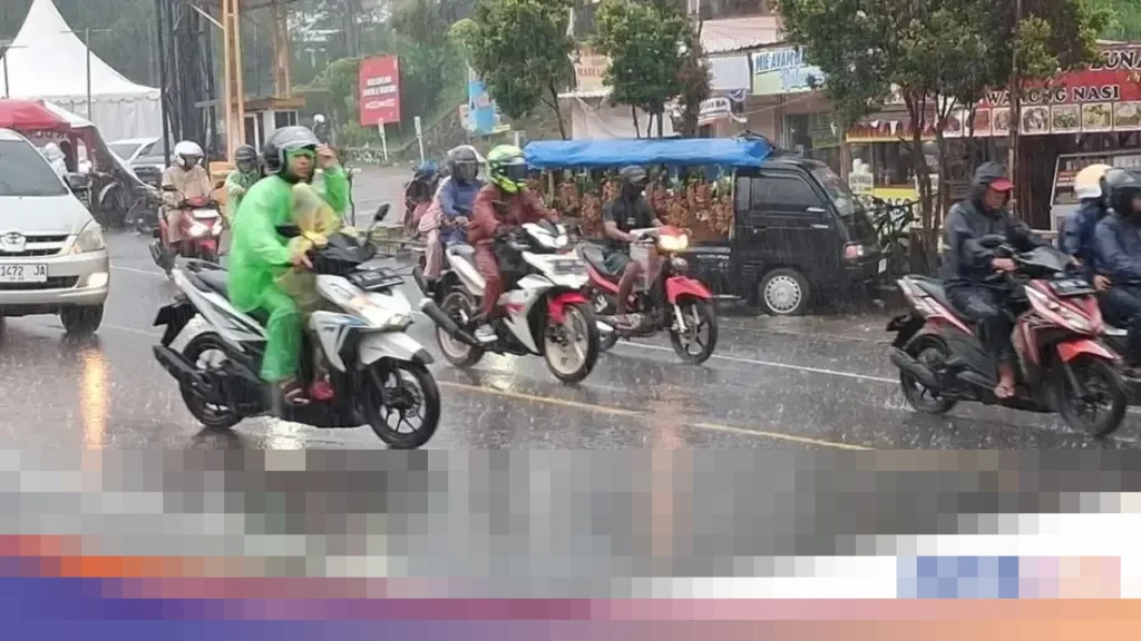 Kawasan Puncak, Bogor, Jawa Barat, dilanda hujan deras pada Minggu sore, 28 Desember 2025. Kondisi cuaca ekstrem ini memicu imbauan dari pihak kepolisian agar para pengendara meningkatkan kewaspadaan, mengingat potensi bencana di wilayah tersebut.