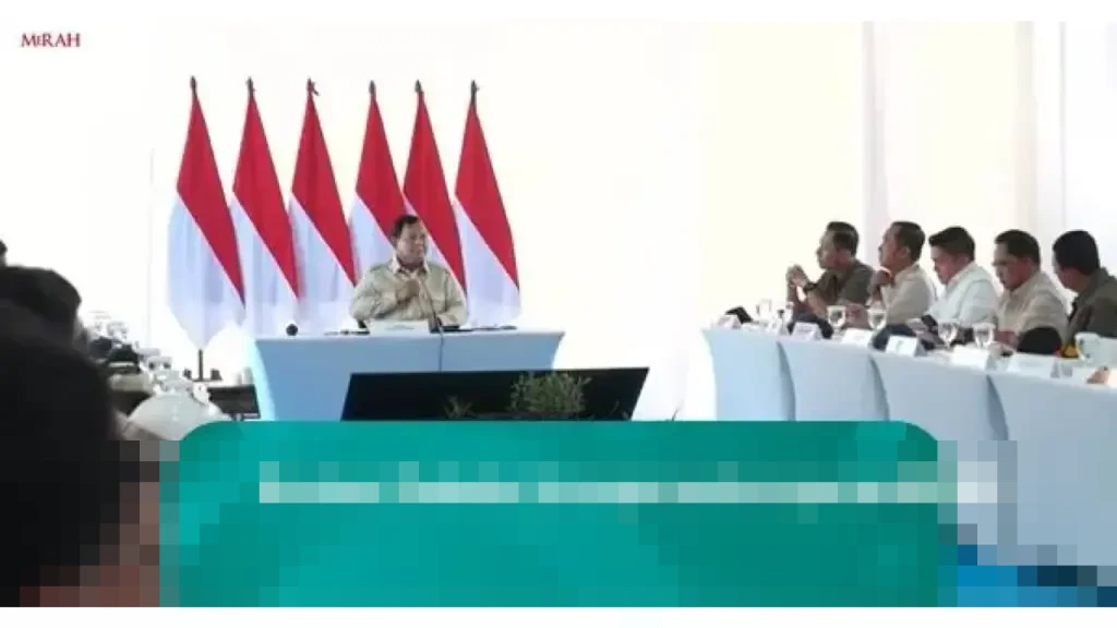 Presiden Prabowo Subianto memimpin langsung rapat koordinasi penanganan pascabencana di Aceh Tamiang, Provinsi Aceh, pada Kamis (1/1/2026). Kunjungan ini dilakukan di sela peninjauan pembangunan hunian bagi para korban terdampak bencana di wilayah tersebut. Momen menarik terjadi saat rapat dihentikan sementara karena azan zuhur berkumandang.