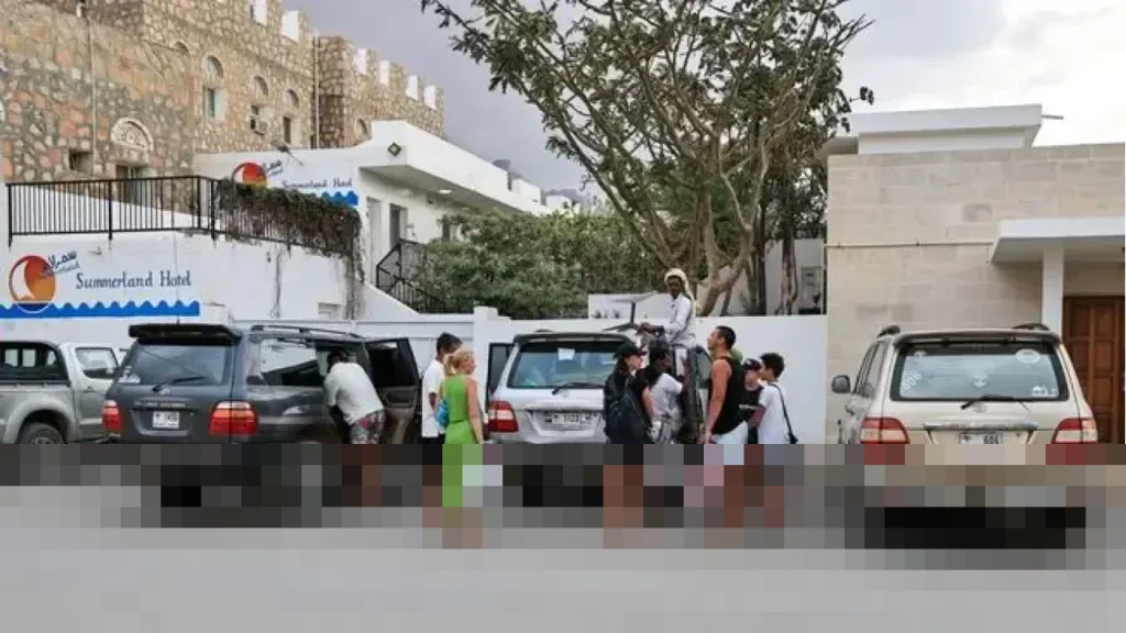 Di tengah ketidakpastian ini, para wisatawan terlihat berkumpul di luar sebuah hotel di Pulau Socotra, Yaman. Mereka menunggu kesempatan untuk meninggalkan kawasan itu, sebagian membawa koper dan perlengkapan perjalanan, sementara lainnya tampak cemas memantau situasi, di tengah upaya evakuasi dan ketidakpastian kondisi keamanan yang mendorong mereka segera keluar dari kota tersebut.